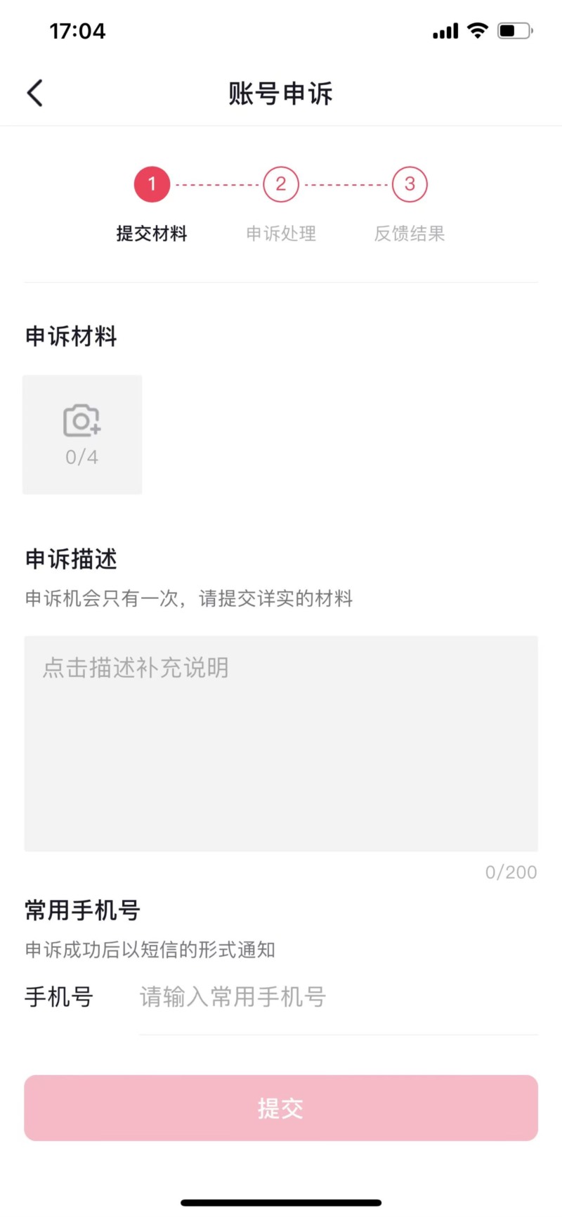 根據(jù)申訴類型填寫相關(guān)信息,并按照頁面提示提供必要的證明材料,比如個(gè)人身份證明、視頻證明等。