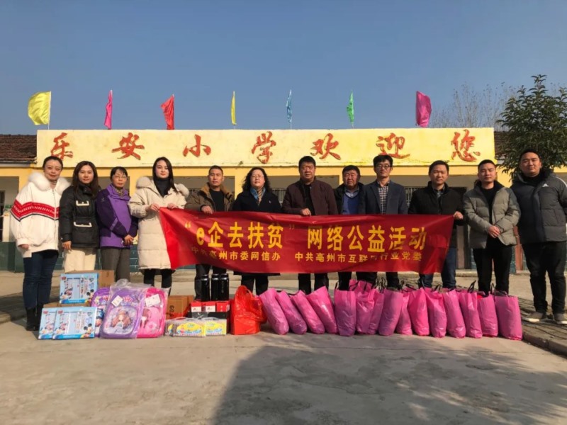 12月4日,由亳州市委網(wǎng)信辦、亳州市互聯(lián)網(wǎng)行業(yè)黨委組織開展的“e企去扶貧”網(wǎng)絡(luò)公益活動,走進利辛縣鞏店鎮(zhèn)樂安小學。